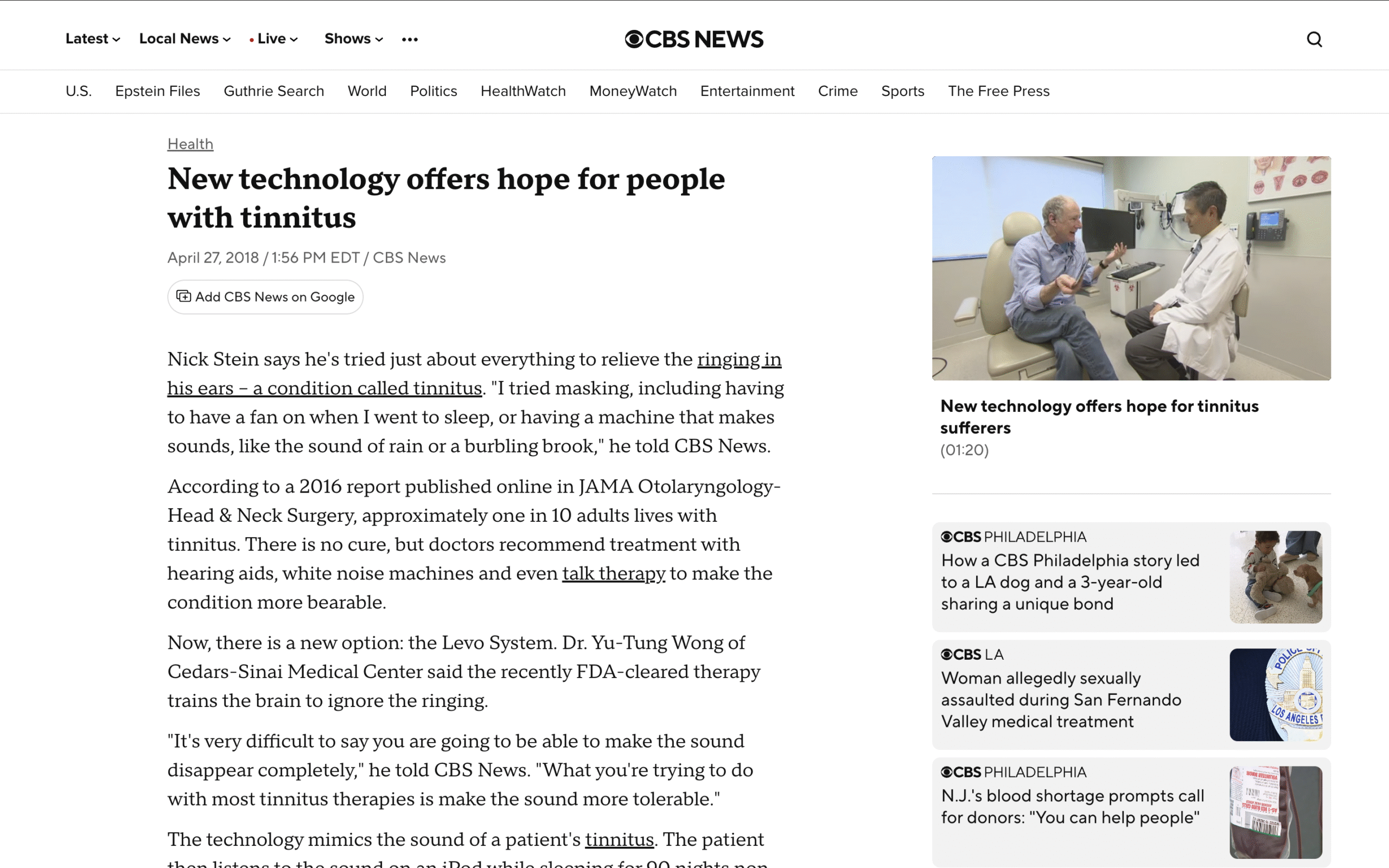 Hospital de EE.UU. aplica terapia sonora personalizada para tratar el tinnitus